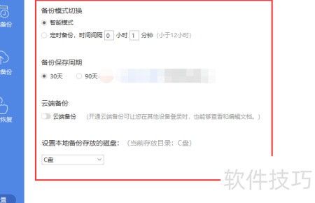 3、 可在设置中选择智能或定时备份模式,设定保存时长与存储位置,完成配置后点击关闭即可。
