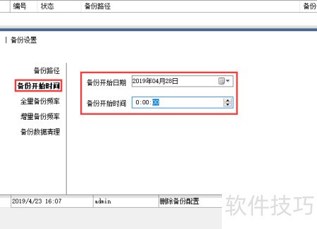 8、 在左侧选择备份开始时间,右侧进行详细设置。