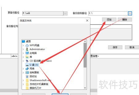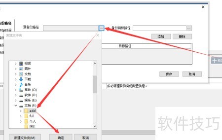7、 在源备份路径后点击目标路径旁的浏览按钮,于弹出窗口中选择Office文件的保存位置,随后依次点击确定和添加完成操作。