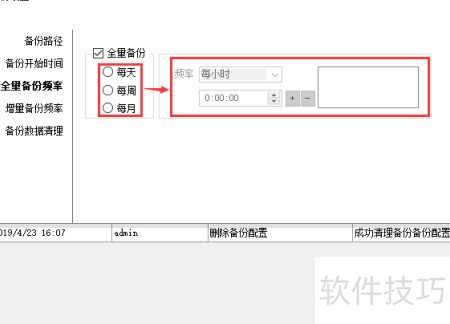 9、 点击左侧全量备份频率,先勾选全量备份选项,再设定具体执行频次。