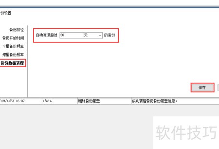 11、 在左侧选择备份数据清理,右侧设定超过指定金额的备份自动删除,设置完毕后点击保存即可完成操作。