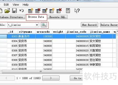 4、 浏览数据时,只需点击Browse Data标签,选定表名后执行查询,即可查看全部记录,并支持新增、修改和删除操作,操作简便,十分实用。