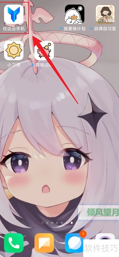 1、 打开手机,找到优达云手机应用并点击进入。