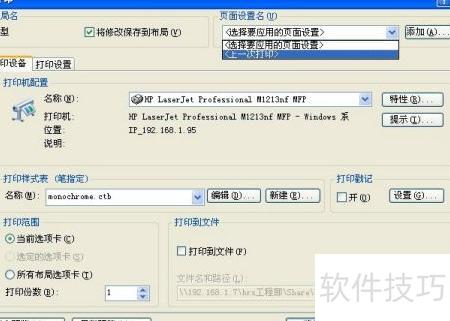 2、 按下CTRL+P调出打印界面,若曾打印过,选择上次打印可跳过重新设置打印机的步骤,直接完成打印准备。