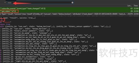 6、 在指定位置输入关键词,可筛选特定数据包,所示,已找到获取全部实体状态的数据包。