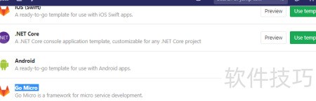 4、 选择Go Micro,然后点击使用模板即可开始。