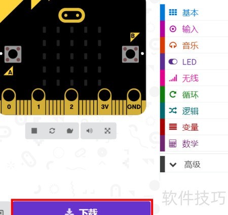 22、 编程完成后,将hex文件下载至micro:bit即可运行程序。