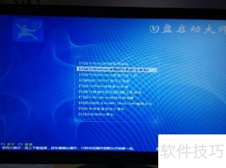 5、 重启电脑后按热键进入U盘启动大师PE系统界面。