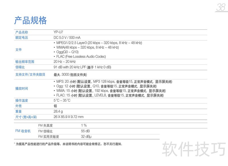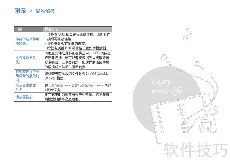 三星YP-U7AS数码音频播放器使用说明书详细说明了设备的操作步骤与常见问题的解决方法,帮助用户更好地掌握和使用该款播放器。