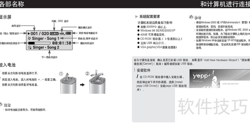 三星YP-MT6ZL数码音频播放器使用说明书详细说明了设备的操作方式与常见问题的处理方法,帮助用户更好地使用和维护产品。