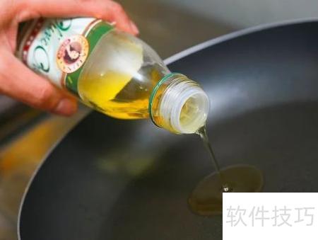 4、 将一汤匙油倒入大平底锅,中火加热至油冒烟后再放入食材,避免过早下锅导致食物湿软油腻。