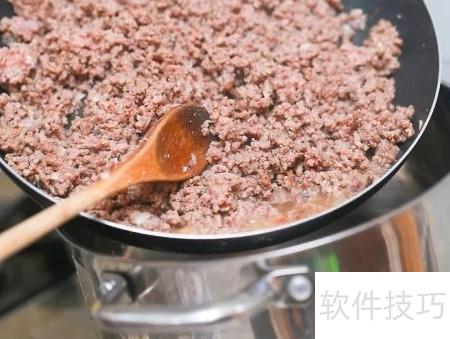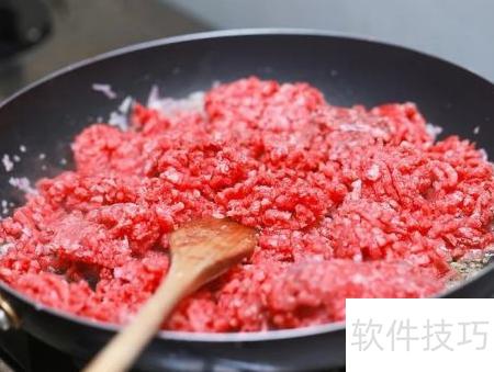 7、 将450克牛肉糜放入锅中,用中火翻炒至肉色变棕。加入洋葱和大蒜一同炒香,持续翻炒至肉糜完全呈褐色。过程中适量加入盐和黑胡椒调味。若时间充裕,可另起锅单独炒肉,但通常情况下直接合炒即可,简便高效。