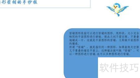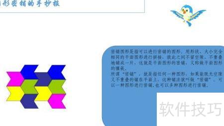 2、 在绘制好的文本框中填写图形密铺的手抄报,突出主题内容。