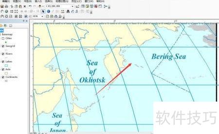 1、 打开GIS地图,选定指北针添加位置。