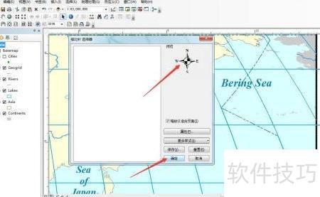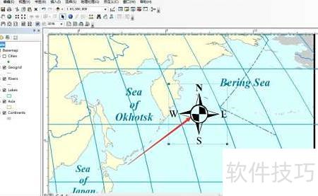 通过插入命令,GIS能迅速在地图上添加指北针。