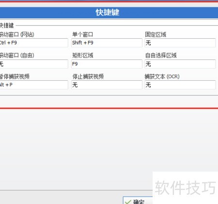 3、 进入快捷键设置界面,编辑所需区域后点击确定,即可完成配置。