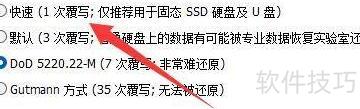 5、 选择删除方式,例如快速(1次覆写;仅适用于固态硬盘和U盘),根据实际使用需求进行操作。