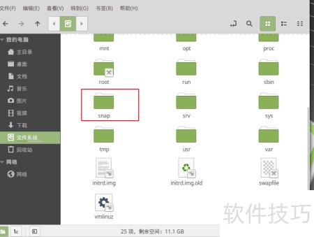 6、 打开snap文件夹,里面列出了所有已安装的软件或游戏,选择其中一个目录进入即可。