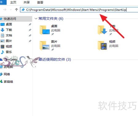 1、 在Windows文件资源管理器地址栏中输入Startup文件夹路径即可打开。