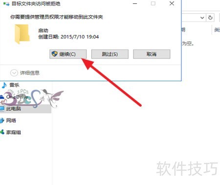 5、 移动该文件夹需管理员权限,请使用具有管理员权限的账户登录后点击继续操作。
