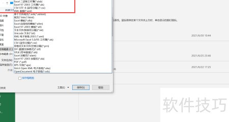 8、 点击保存类型,从下拉菜单中选择xlsx后缀。