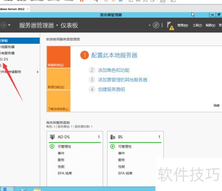 2、 点击左侧的AD DS选项。