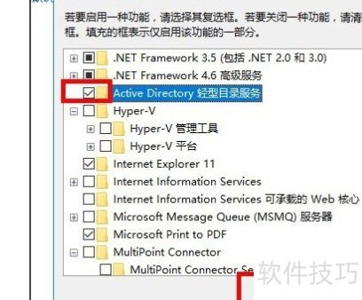 11、 在功能列表中选择Active Directory轻型目录服务,确认后点击确定即可完成操作。
