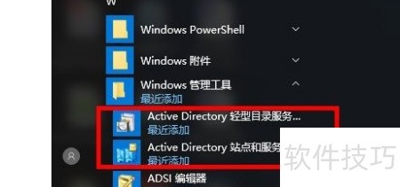 6、 在开始菜单的最近添加的管理工具中,定位到Active Directory轻型目录服务即可完成操作。