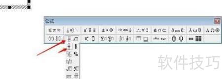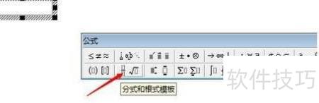 3、 点击分式和根式模板,从下拉菜单中选取分式选项。