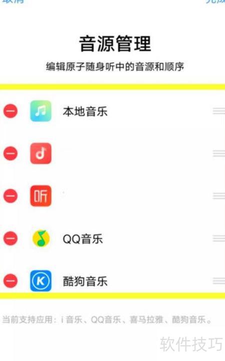 3、 打开音源管理,添加酷狗音乐、QQ音乐等播放应用即可。