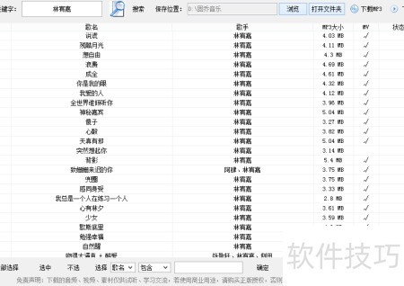 3、 若要批量下载某位歌手的全部歌曲,可在音乐搜索栏输入歌手名称,例如林宥嘉,系统将显示相关结果,操作简便直观。