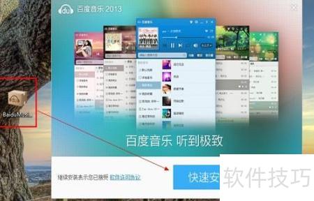 2、 下载完成后,双击电脑上的百度音乐安装包,打开安装界面后直接点击快速安装即可。