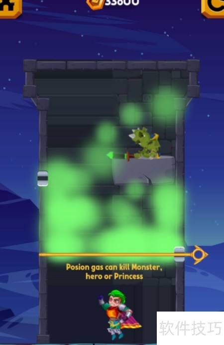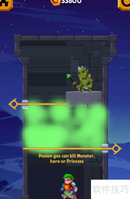 1、 本关含两个横向拉针,目标为清除上方敌人,具体布局见示意图。