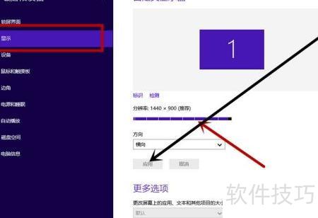 4、 第三种方法是通过开始菜单进入电脑设置,点击显示选项,然后在屏幕分辨率中滑动调整分辨率。此方式的操作界面与前两种不同,具体步骤可参照图示进行操作。