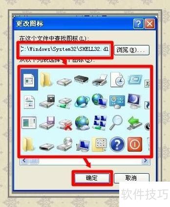 10、 图标选择少?可利用Windows XP系统自带的图标进行替换,丰富个性化设置。