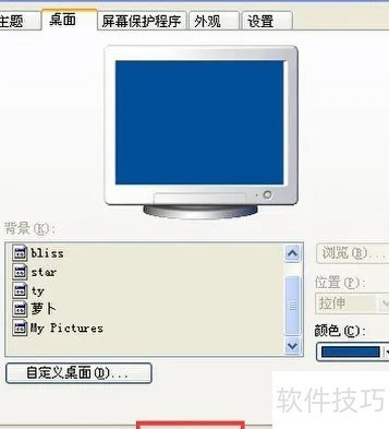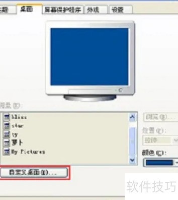 4、 打开显示属性,切换至桌面选项卡,点击自定义桌面按钮进行设置。