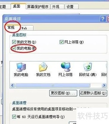 6、 打开桌面项目设置,在常规选项中找到桌面图标部分,勾选我的电脑,然后点击确定保存设置。
