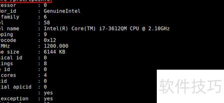 2、 查看该文件可识别物理处理器数量(插槽)、每颗CPU的核心数、可用的CPU标志寄存器及其他相关信息。