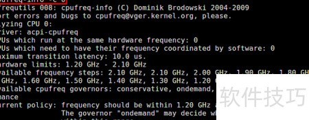 3、 cpufreq-info 命令属于 cpufrequtils 工具包,用于从系统内核和硬件中获取 CPU 频率相关信息。它可显示处理器当前运行频率、支持的最低与最高频率、频率调节策略及统计详情等。通过该命令,可以查看指定核心(如 CPU 0)的详细频率状态和配置信息。