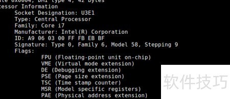 5、 dmidecode命令通过读取BIOS中的DMI(桌面管理接口)数据,获取详细的硬件信息。其CPU报告涵盖处理器厂商、型号版本、CPU标志寄存器、最高及当前运行频率、启用的核心数量,以及L1、L2、L3各级缓存的配置情况,全面呈现系统中央处理器的物理与技术参数。