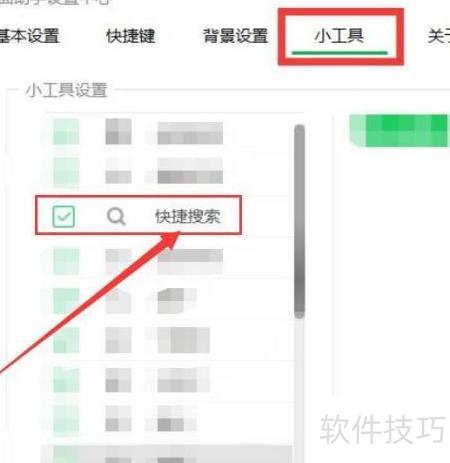 3、 进入小工具界面,勾选设置中的快捷搜索选项即可完成启用。