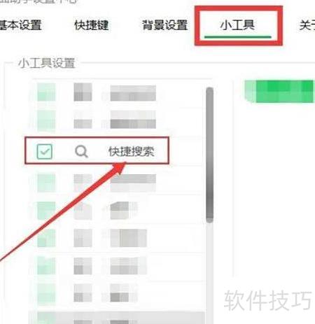 3、 进入小工具界面,选择小工具设置,勾选快捷搜索功能即可启用,操作所示。