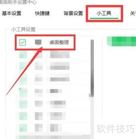3、 打开小工具界面,进入小工具设置,勾选桌面整理功能即可完成设置。