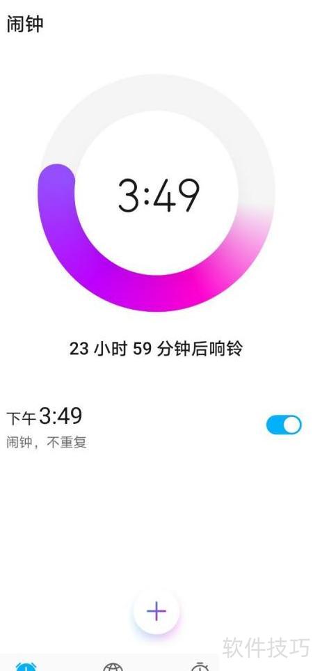 1、 打开手机时钟应用,进入闹钟页面后点击加号添加新闹钟。