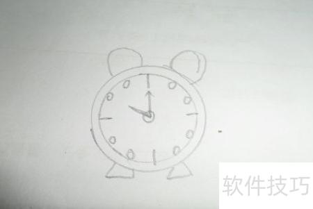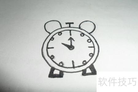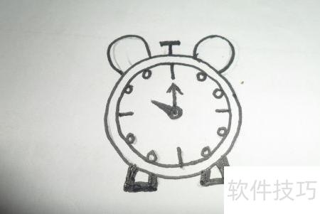 8、 用碳素笔勾勒轮廓,小闹钟完成。