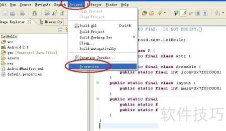 4、 所示,进入主菜单的工程Project选项,随后在其下拉列表中选择并点击Properties即可。