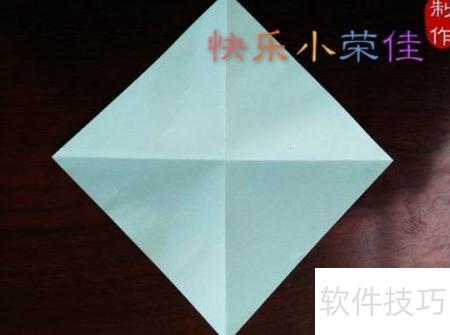 1、 取一正方形彩纸,沿两条对角线分别折叠,形成交叉折痕。