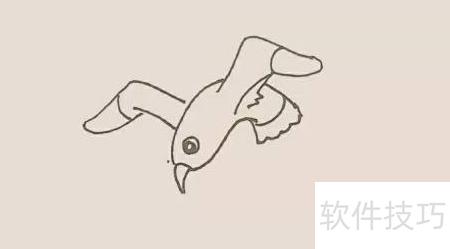 6、 为其添上眼睛,并在尾翼与双翅勾勒弧线。