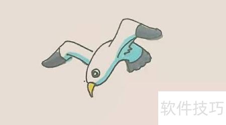 7、 给海鸥涂上漂亮的颜色,作品就完成了。