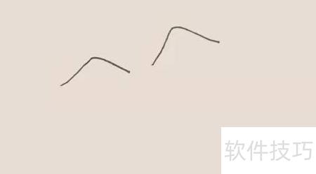 5、 先画一条短直线,再添上波浪线构成海鸥的尾部。